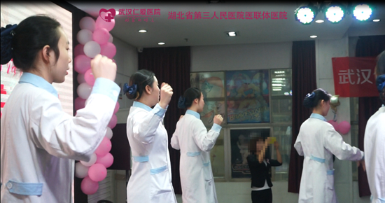 活動(dòng)開(kāi)場(chǎng),在音樂(lè)伴奏下護(hù)士小姐姐們齊做乳房保健操,將保健操與現(xiàn)場(chǎng)非常受歡迎的舞蹈相結(jié)合,配上節(jié)奏感強(qiáng)的音樂(lè),讓參與活動(dòng)的女性朋友們紛紛活動(dòng)起來(lái),在寓教于樂(lè)中懂得乳房保健的重要性。