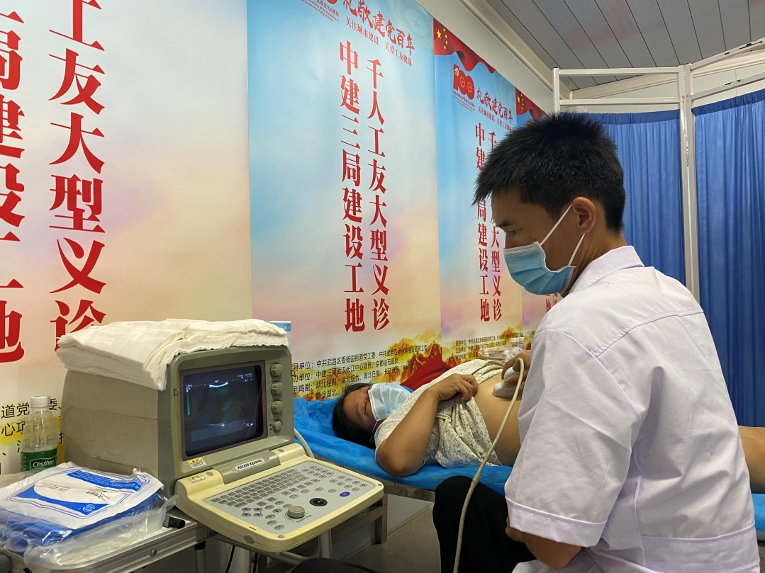 據(jù)悉,該場“千人義診”活動由中共武昌區(qū)委楊園街道黨工委指導(dǎo),中建三局武漢長江中心項(xiàng)目黨支部和武漢京都結(jié)石醫(yī)院黨支部聯(lián)合主辦,旨在通過開展免費(fèi)體檢、公益義診以及援助性治療等形式,提高建筑工人們的健康意識,切實(shí)維護(hù)一線建筑工友們的健康權(quán)益。