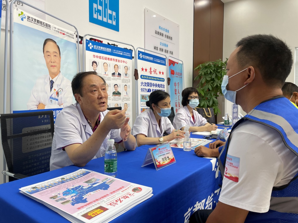 啟動儀式結(jié)束后,武漢京都結(jié)石醫(yī)院為到場的數(shù)百名建筑工人代表進(jìn)行了免費(fèi)體檢、專家咨詢等服務(wù)項(xiàng)目,獲得廣大工友們的紛紛點(diǎn)贊。
