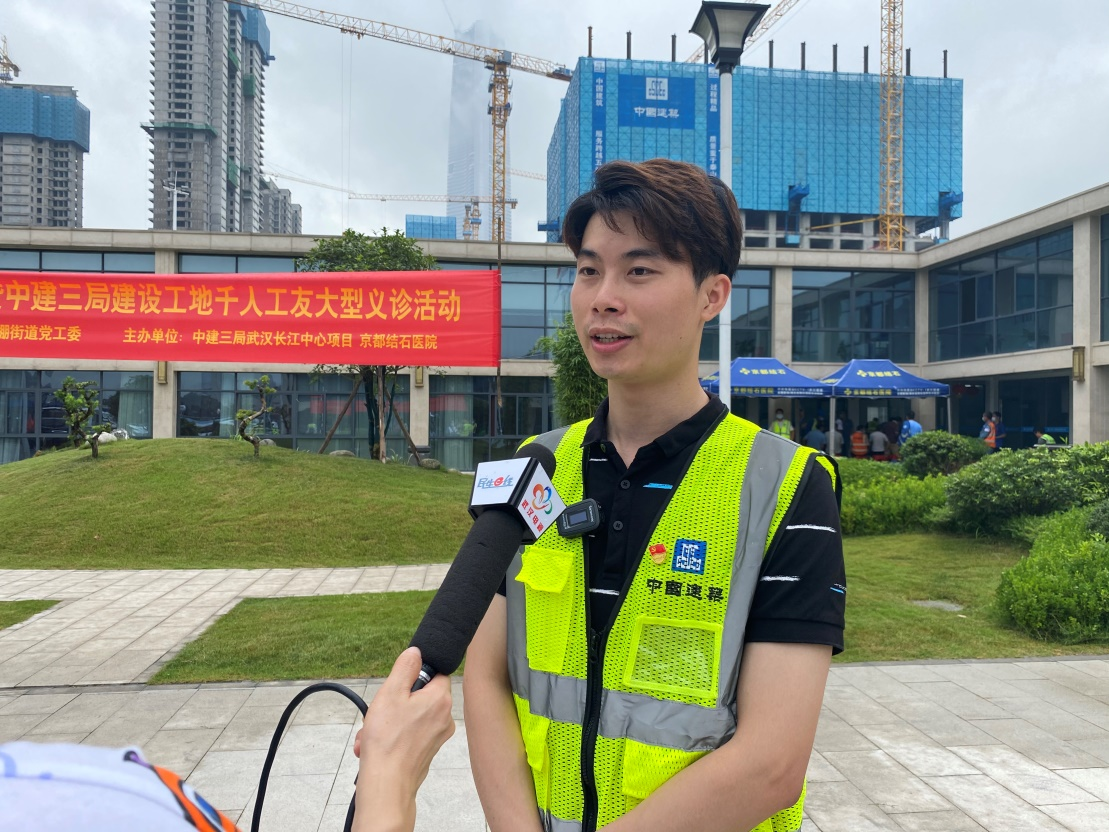 中建三局武漢長江中心項(xiàng)目黨支部副書記黃業(yè)發(fā)接受記者采訪