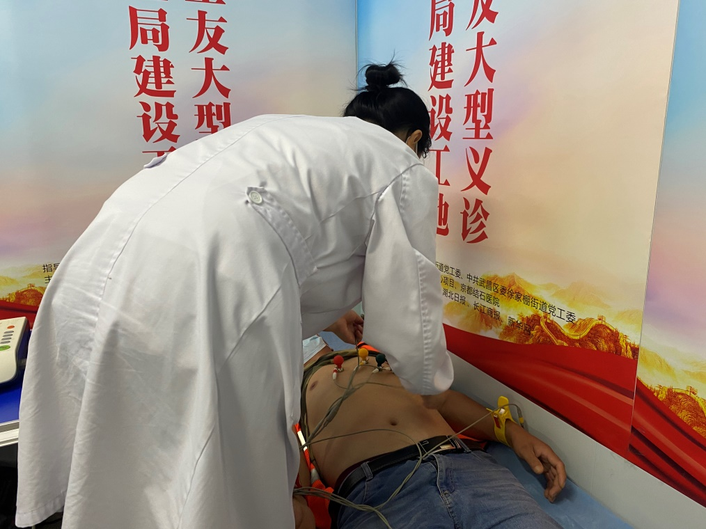 “建筑工人常年從事體力勞動,且長期處于露天作業(yè)當(dāng)中,出汗量大,如不及時補(bǔ)充水分,很容易患上泌尿系結(jié)石相關(guān)疾病。而夏季又是泌尿系結(jié)石的高發(fā)期,一旦結(jié)石急性發(fā)作,不僅會引起劇烈的腎絞痛影響作業(yè)安全,而且結(jié)石梗阻時間過長引起的積水問題還會給腎臟帶來嚴(yán)重?fù)p害,重則危及生命。除此之外,高溫之下,由于人體大量排汗,體內(nèi)水分流失多,使血液黏稠度上升,血液循環(huán)受阻,很容易誘發(fā)血栓、心梗、冠心病、中風(fēng)等心腦血管疾病,導(dǎo)致猝死事件發(fā)生。”武漢京都結(jié)石醫(yī)院黨支部書記劉陽光向記者介紹到,為了預(yù)防夏季高溫季節(jié),腎結(jié)石和心梗這兩大高頻高危疾病的發(fā)生,醫(yī)院特別召集兩組隊(duì)伍,分別為現(xiàn)場的廣大工友們提供全程免費(fèi)結(jié)石彩超篩查及心電圖檢查、血壓、心率等項(xiàng)目。