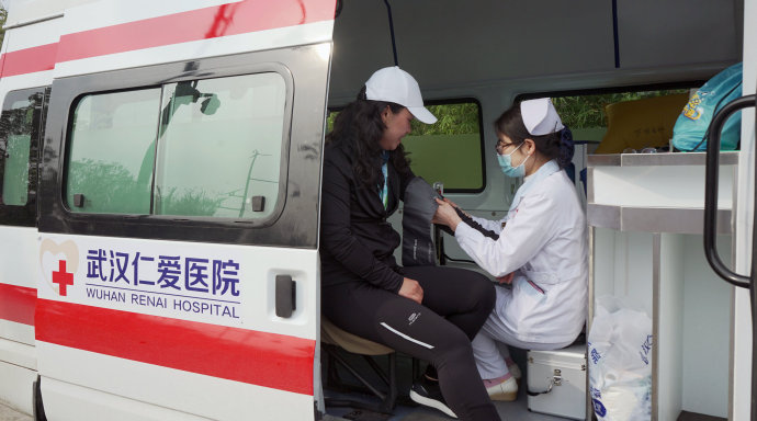 武漢仁愛醫(yī)院醫(yī)護(hù)人員為跑友服務(wù)